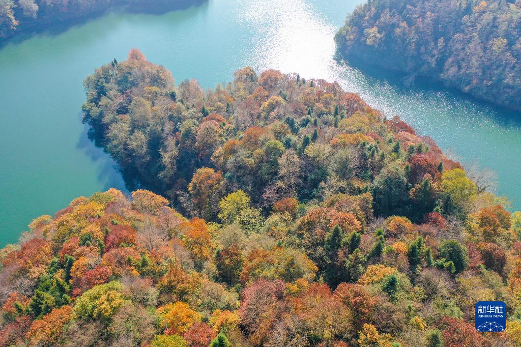 11月27日,在貴州省畢節市百里杜鵑管理區鵬程街道移山湖拍攝的景色(無人機照片)。