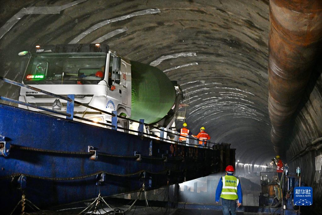 11月27日,中鐵二局建設者在膠州灣第二海底隧道內施工作業。