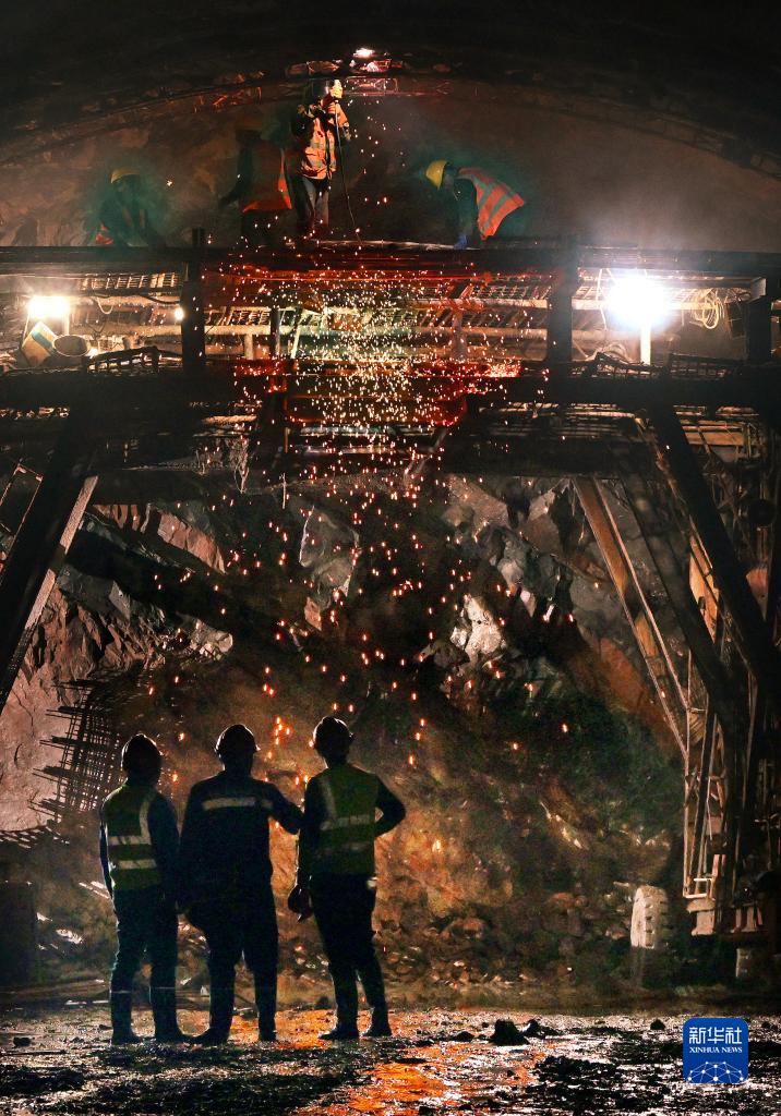 11月27日,中鐵二局建設者在膠州灣第二海底隧道內施工作業。