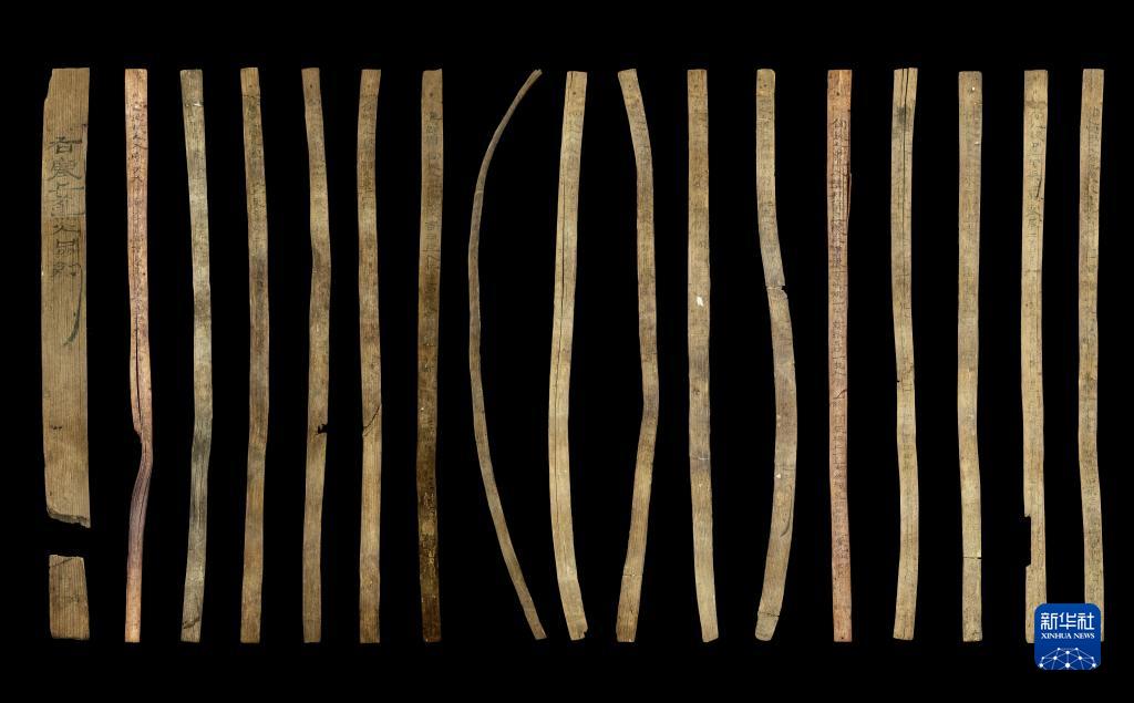 漢簡《塞上烽火品約》。簡牘中寫道,如果匈奴人白天入侵殄北塞,舉起兩個蓬,同時點燃一堆積薪;晚上入侵,則點燃一堆積薪,同時在烽燧周圍的堠墻上點燃苣火,直到天明不準熄滅。新華社發(甘肅簡牘博物館供圖)