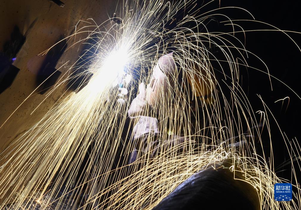11月27日,工人在深中通道海底沉管隧道內進行切割作業。