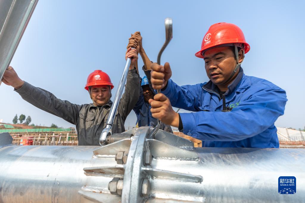11月28日,在位于重慶市銅梁區少云鎮的銅梁1000千伏變電站施工現場,國網重慶送變電公司施工人員在吊裝前對構架梁進行檢查。