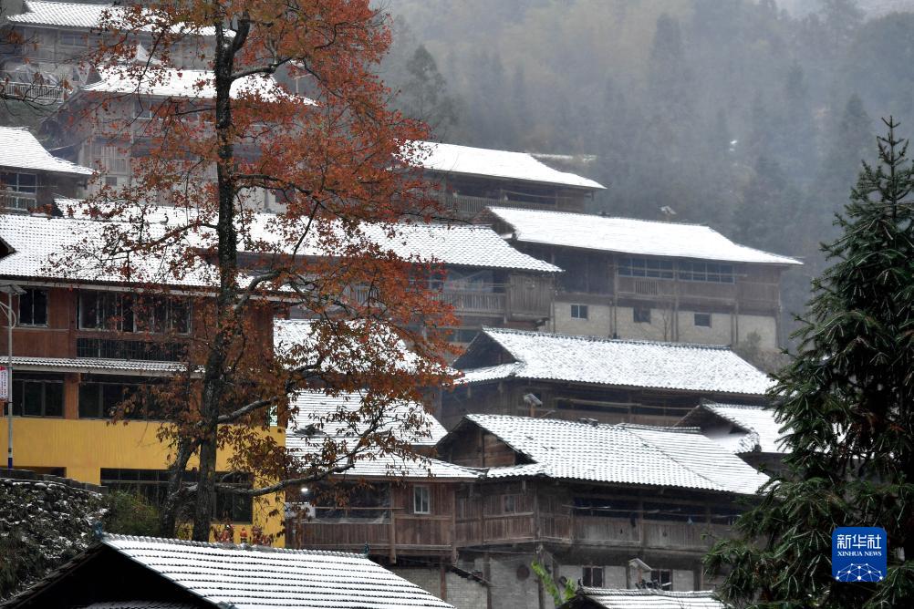 冰雪中的烏英苗寨(2021年12月26日攝)。
