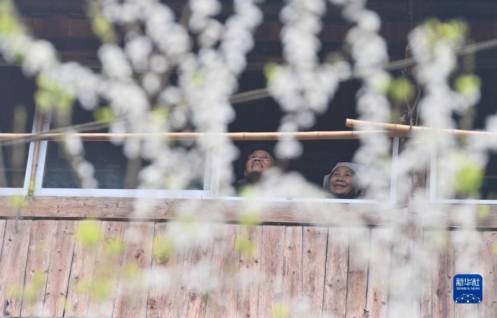 烏英苗寨老人梁安合(左)和老伴在看窗外的風景(2023年2月26日攝)。