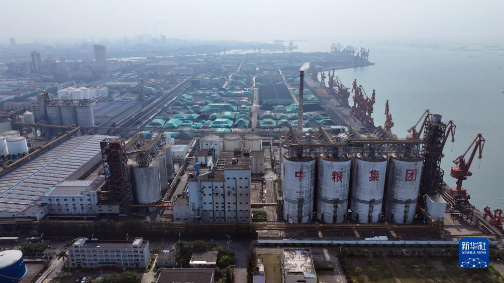 這是廣西欽州港勒溝作業區中糧集團的裝卸碼頭(11月24日攝,無人機照片)。