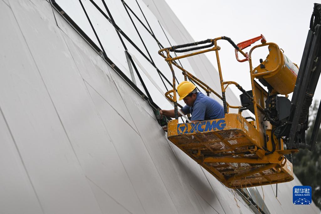 11月25日,工人在位于海南省儋州市的“儋耳追光”驛站工地施工。