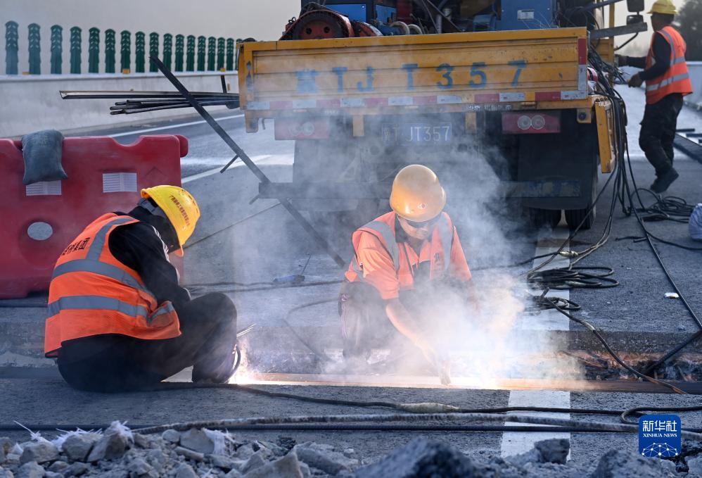11月28日,在廣西龍勝各族自治縣境內,工人在建設龍勝至城步高速公路。