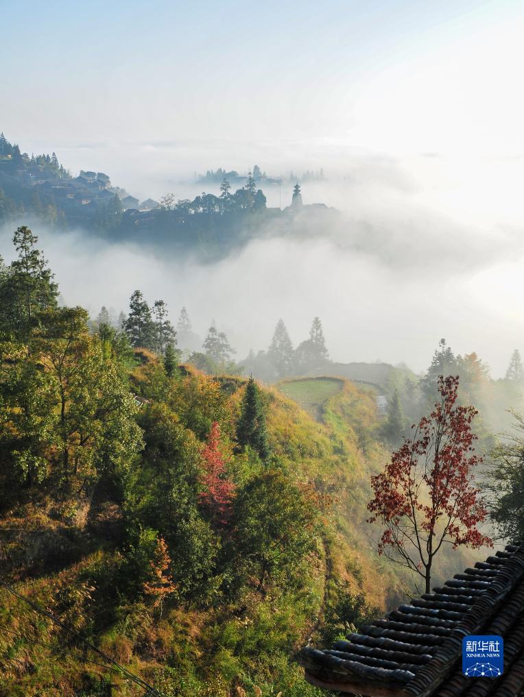 11月28日,貴州省黔東南苗族侗族自治州從江縣高增鄉建華村呈現出云海景觀。