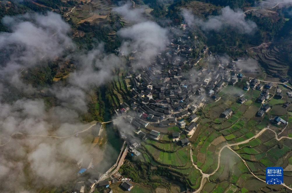 11月28日拍攝的貴州省黔東南苗族侗族自治州丹寨縣揚武鎮五一村(無人機照片)。