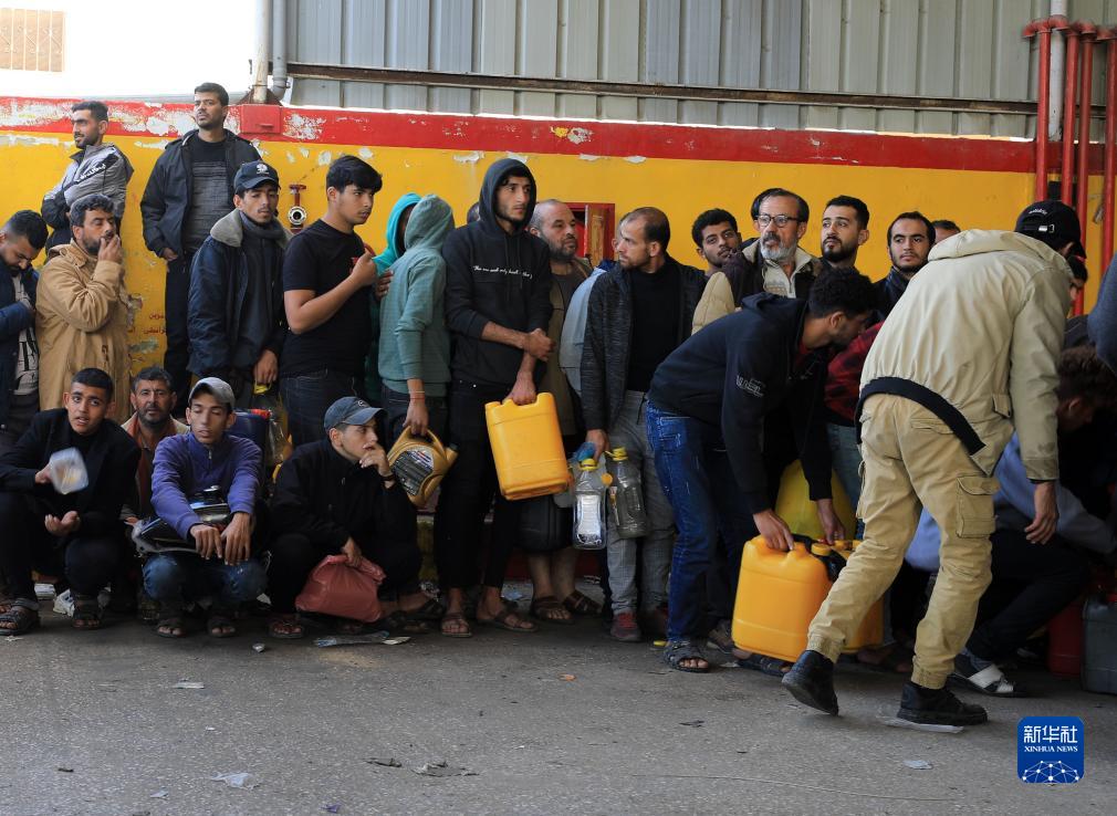 11月28日,在加沙地帶南部城市汗尤尼斯一加油站,人們排隊等待補充燃料。