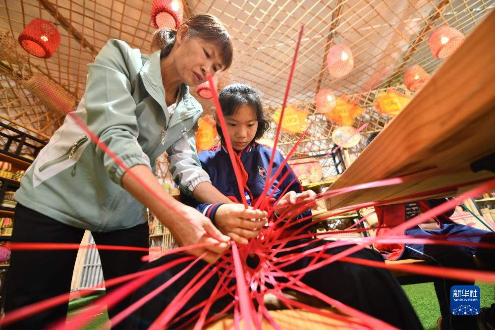 近年來,廣西岑溪市南渡中心小學將當地非遺項目——竹芒編織技藝引進課堂,打造特色校園文化,豐富學生課外生活。