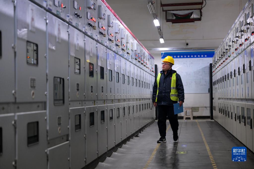 11月28日,工作人員在呼和浩特市和林格爾新區的中國電信云計算內蒙古信息園對設備進行巡檢。