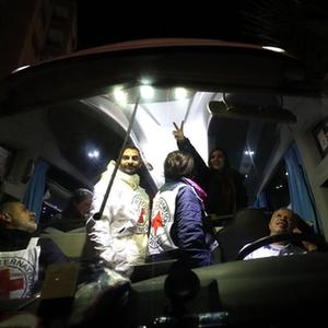 11月28日晚,載有獲釋巴勒斯坦被關押人員的大巴抵達約旦河西岸城市拉姆安拉。