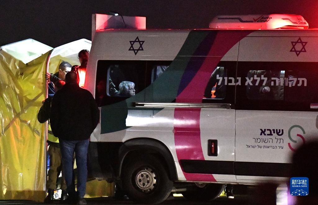 11月29日凌晨,獲釋的第五批被扣押人員搭乘直升機抵達以色列拉馬特甘的一所醫院。