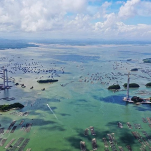 這是2022年8月27日在平陸運河出??诟浇臄z的茅尾海龍門大橋段水域(無人機照片)。