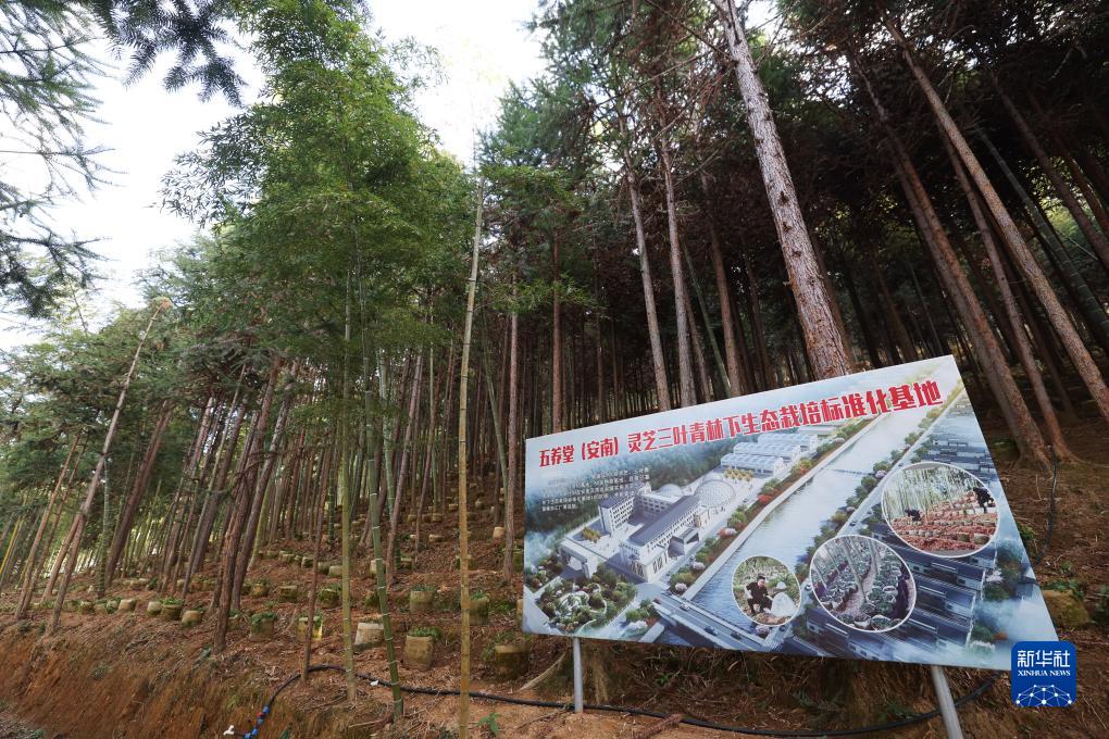 這是11月29日拍攝的慶元縣安南鄉的靈芝三葉青林下生態栽培標準化基地,目前種植了三百多畝林下三葉青和靈芝。