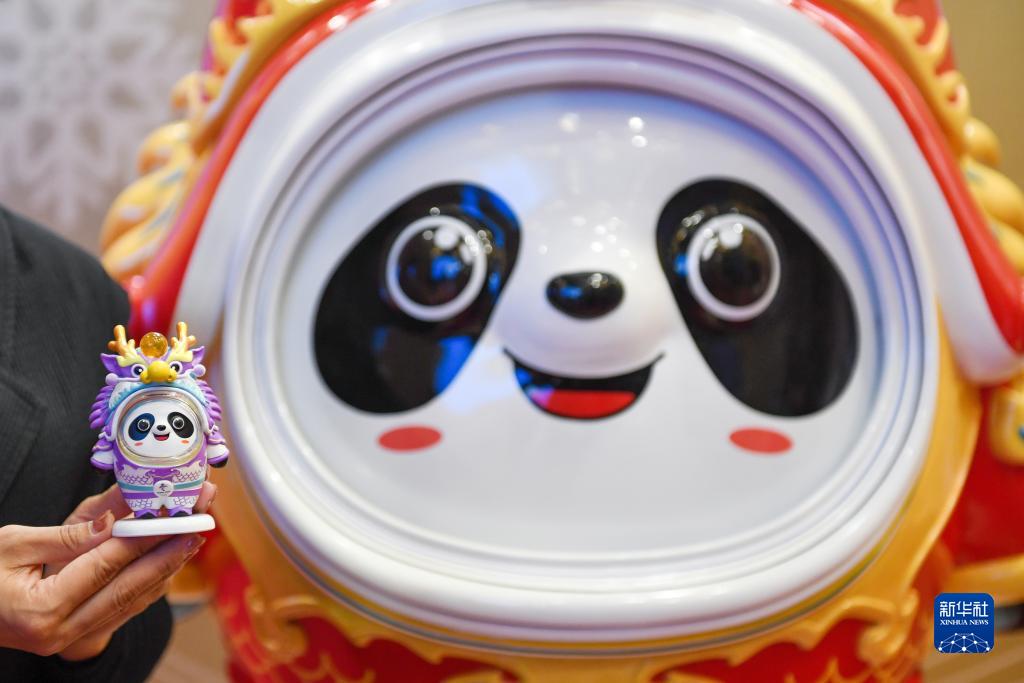 當日,“冰墩墩”龍年新春特別版——“龍墩墩”系列新品在國家體育場金色大廳正式發布?!褒埗斩铡弊鳛閵W林匹克歷史知識產權再次授權開發的文創產品,延續了中國春節文化、生肖文化特色,成為弘揚奧林匹克精神、創新發展中國文化的典型范例。