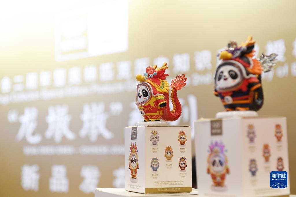 當日,“冰墩墩”龍年新春特別版——“龍墩墩”系列新品在國家體育場金色大廳正式發布?!褒埗斩铡弊鳛閵W林匹克歷史知識產權再次授權開發的文創產品,延續了中國春節文化、生肖文化特色,成為弘揚奧林匹克精神、創新發展中國文化的典型范例。