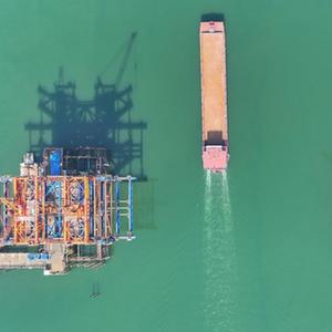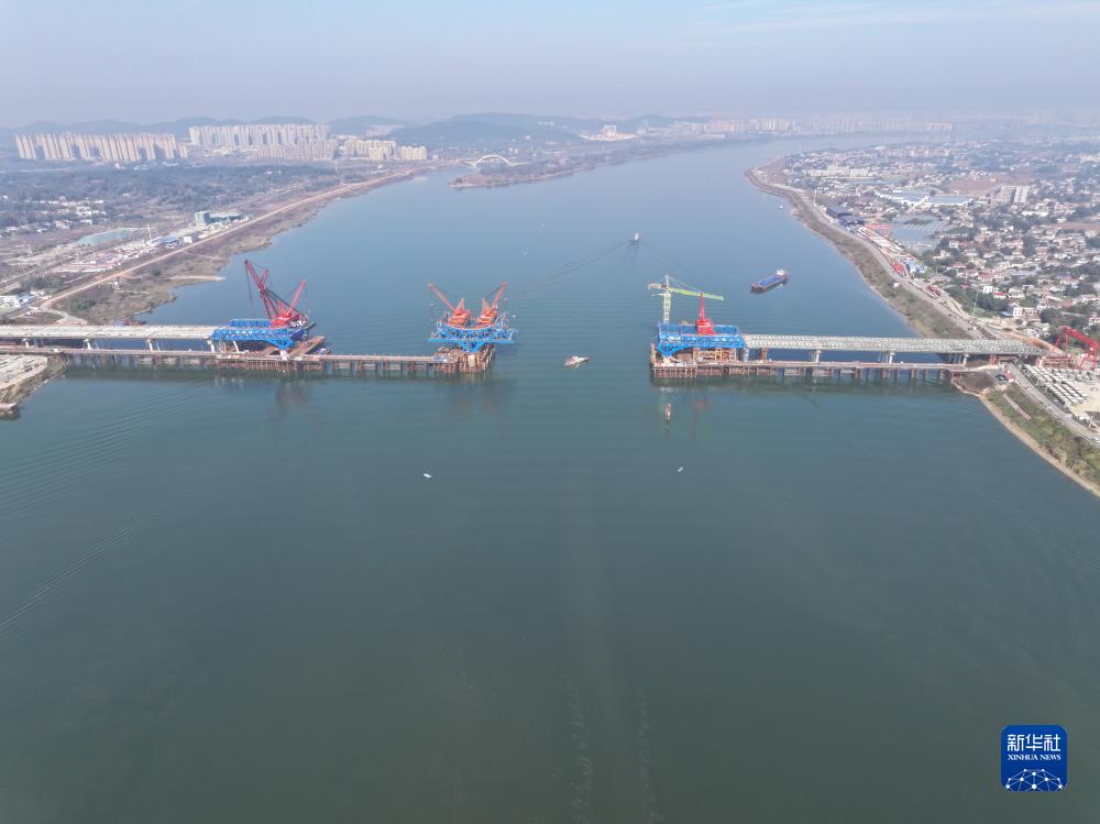 這是建設中的長沙市暮坪湘江特大橋(11月29日攝,無人機照片)。
