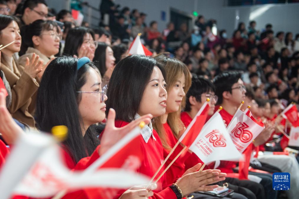 11月29日,學生參加慶祝武漢大學建校130周年大會。