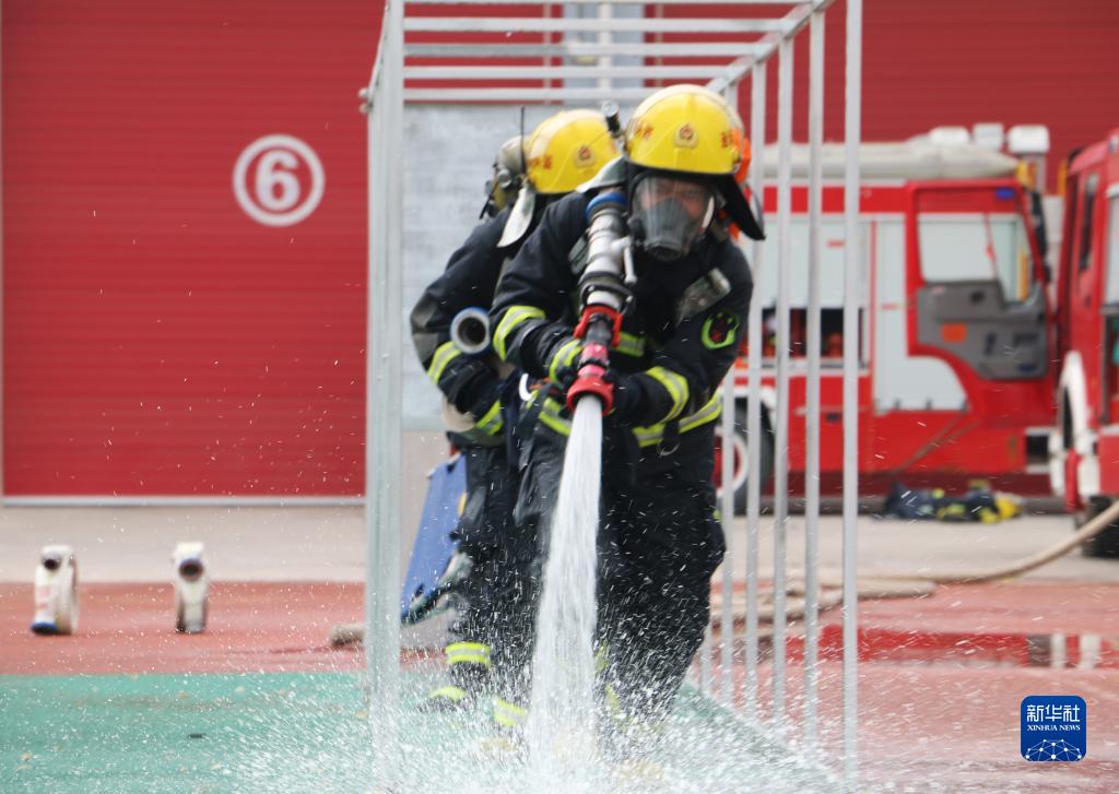 寶塔消防救援站消防員開展縱深滅火救人操訓練(資料照片)。