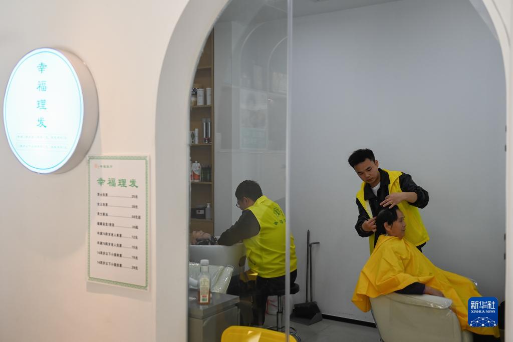11月29日,社區居民在舟山市定海區“幸??蛷d”內理發。