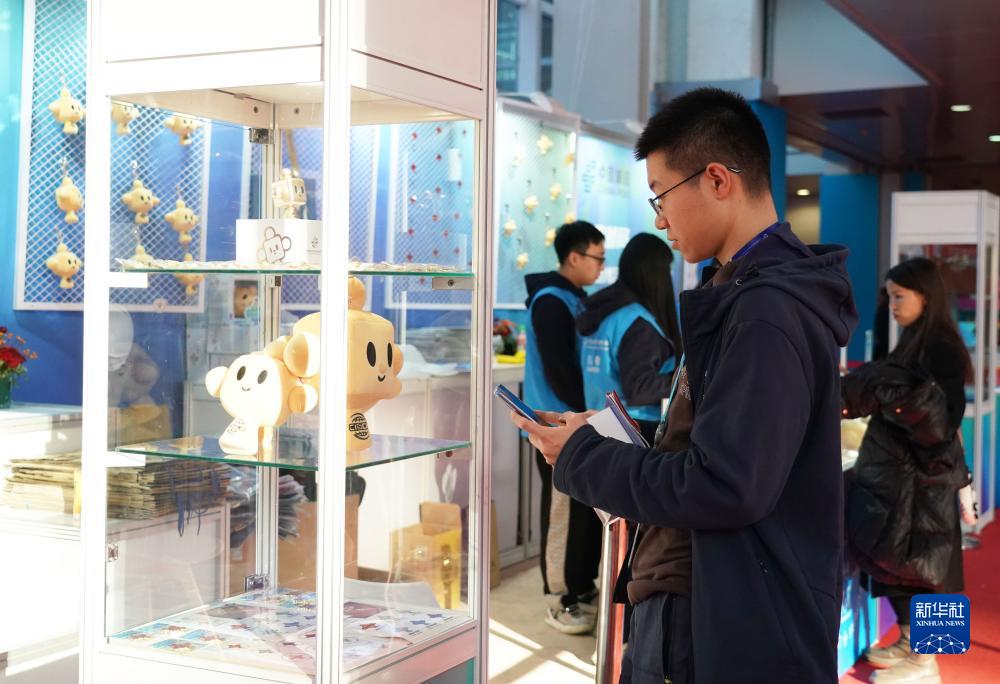 11月29日,觀眾(前)觀看“鏈氪”文創產品。