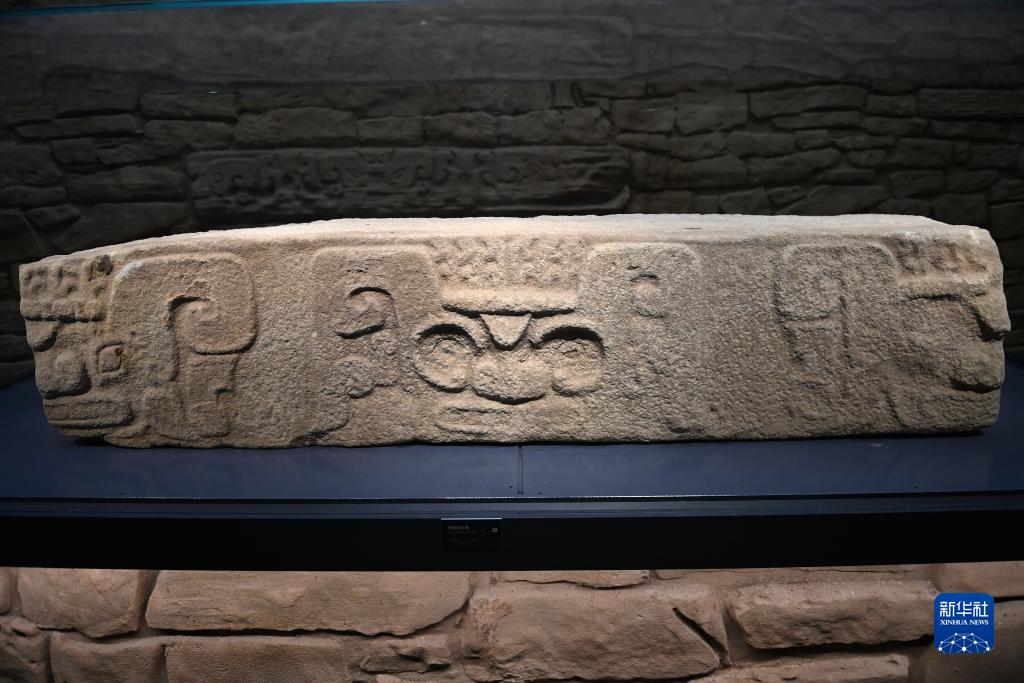 這是11月29日拍攝的石峁博物館展出的石雕。