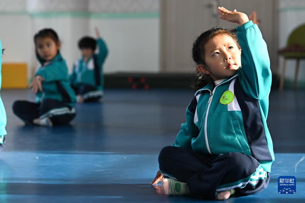 11月29日,青海省西寧市湟源縣幼兒園的小朋友在上舞蹈課。
