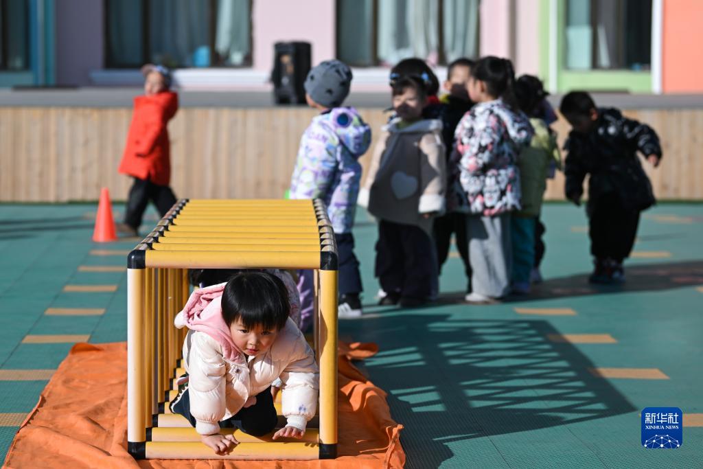 11月29日,青海省西寧市湟源縣幼兒園的小朋友在上戶外活動課。