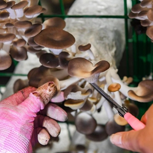 11月29日,何埂鎮豐樂村一食用菌種植企業工作人員在采收秀珍菇。