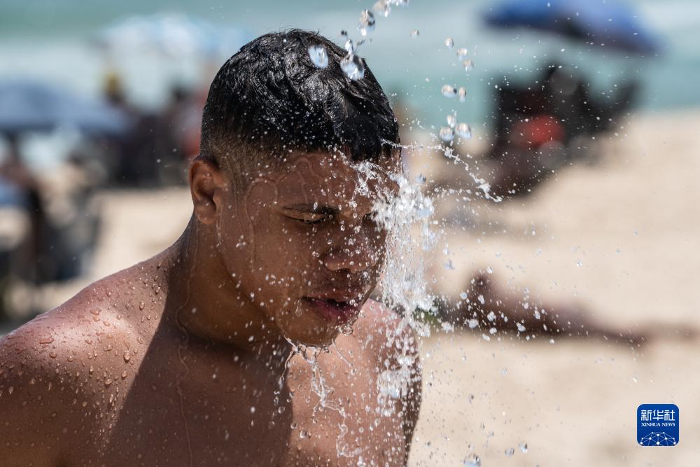2023年11月14日,一名男子在巴西里約熱內盧依帕內瑪海灘上沖涼。11月13日,受到席卷全國大部分地區的熱浪影響,巴西圣保羅氣溫達到37.7攝氏度,是巴西國家氣象研究所自1943年有記錄以來第二高溫。11月14日,里約熱內盧記錄了自2014年以來的最高體感溫度,達到58.5攝氏度。