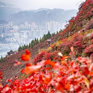 初冬時節,長江三峽重慶市巫山縣水域兩岸色彩斑斕,紅葉似火,美如畫卷。
