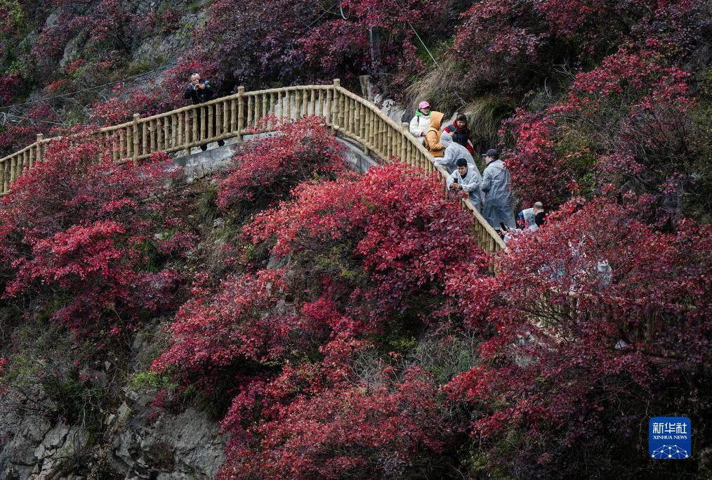 初冬時節,長江三峽重慶市巫山縣水域兩岸色彩斑斕,紅葉似火,美如畫卷。