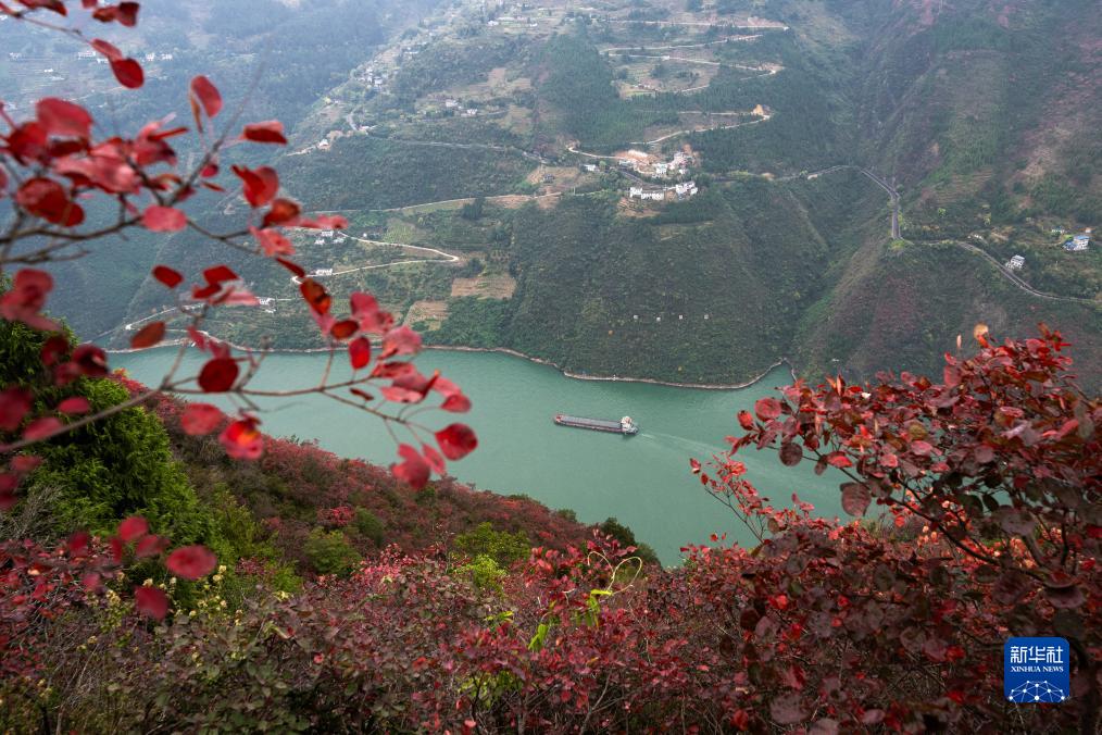 初冬時節,長江三峽重慶市巫山縣水域兩岸色彩斑斕,紅葉似火,美如畫卷。