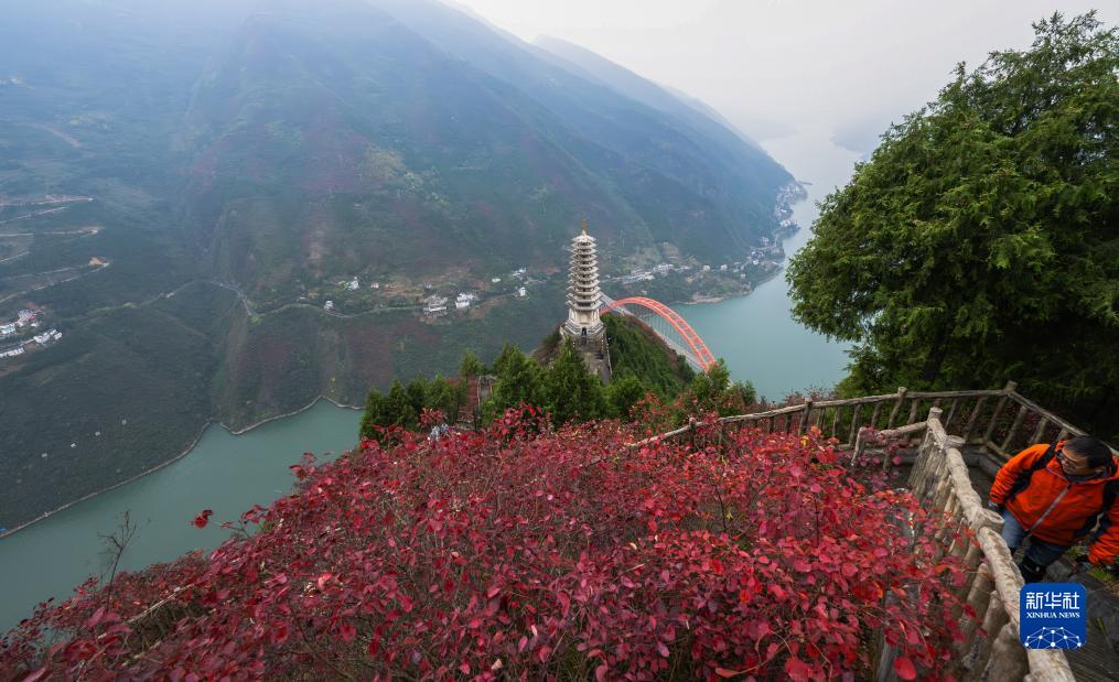 初冬時節,長江三峽重慶市巫山縣水域兩岸色彩斑斕,紅葉似火,美如畫卷。