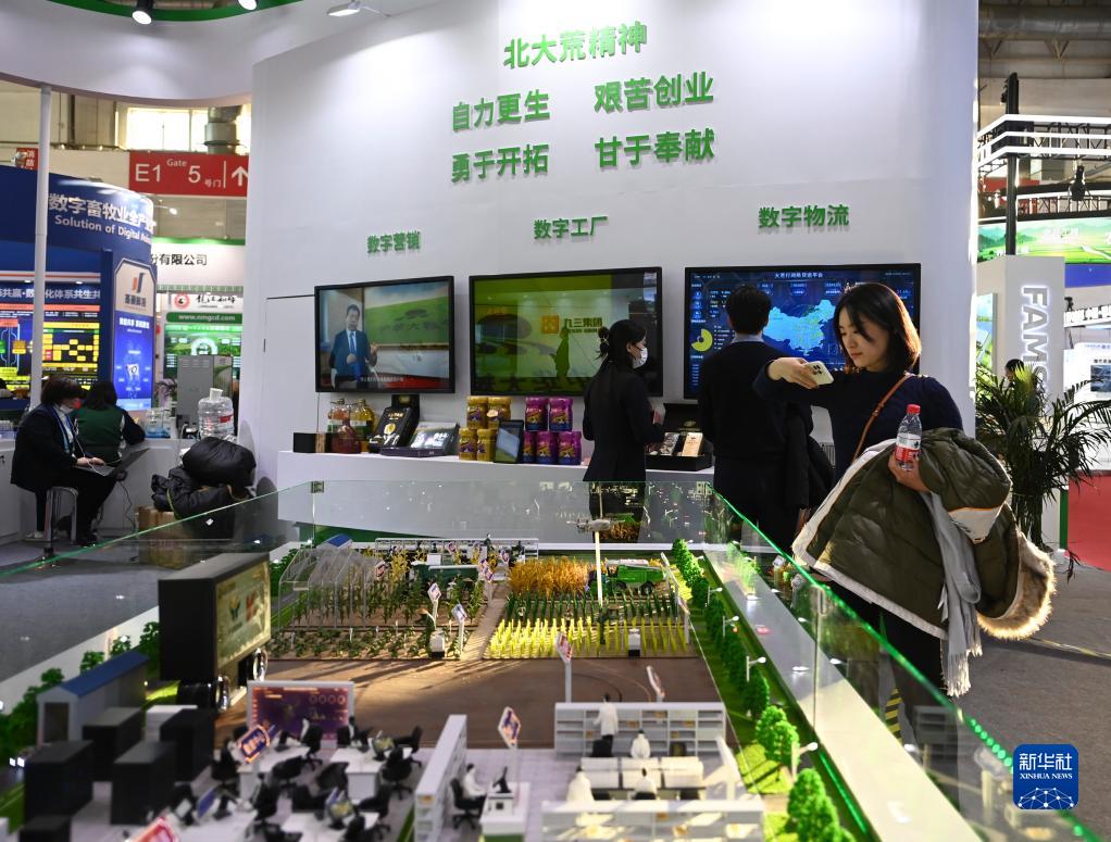 11月30日,參觀者在鏈博會綠色農業鏈展區北大荒集團展臺前觀看智慧育種解決方案。