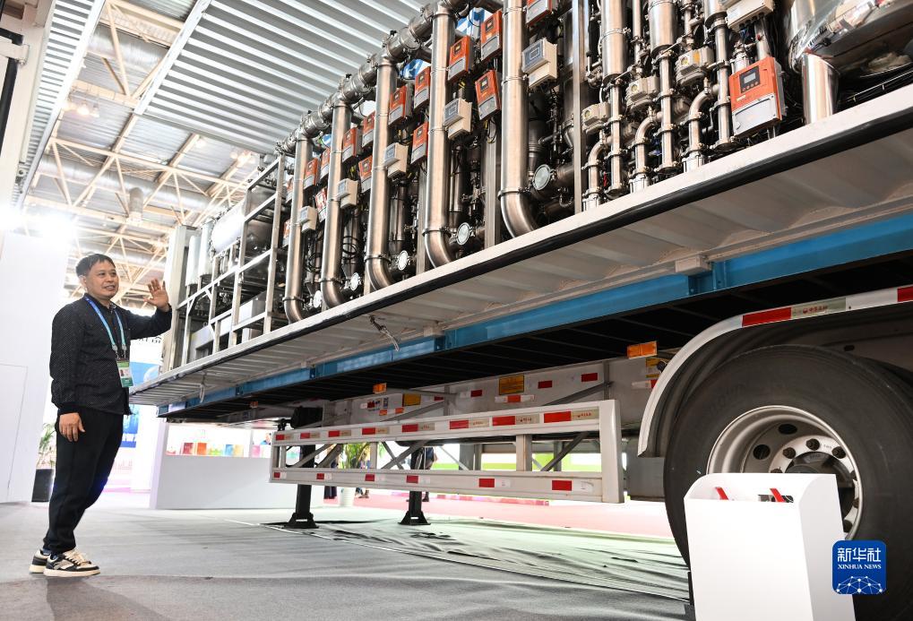 11月30日,在鏈博會綠色農業鏈展區,廣州澤力醫藥科技有限公司工作人員介紹低溫高效提取移動智能工廠相關功能。