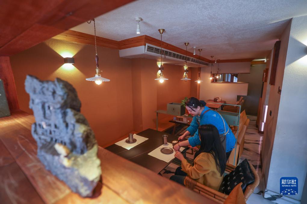 11月30日,在青田縣城的誠磊24小時咖啡館里,工作人員為顧客送上制作好的咖啡。