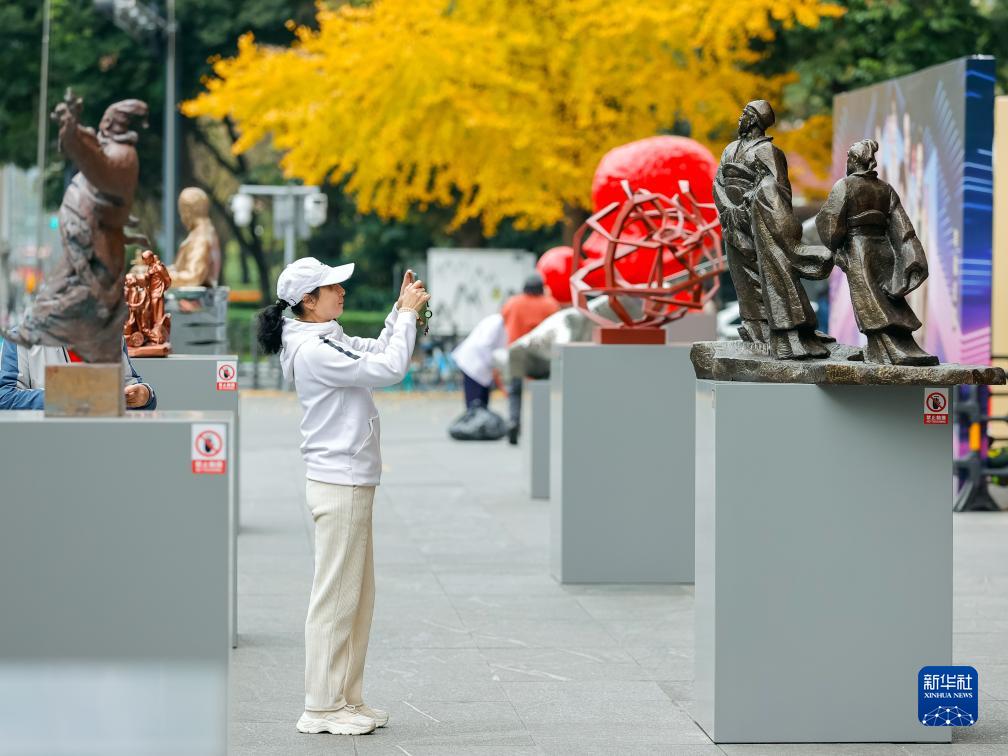 11月30日,人們在欣賞首屆天府雕塑展上展出的作品。