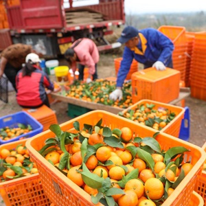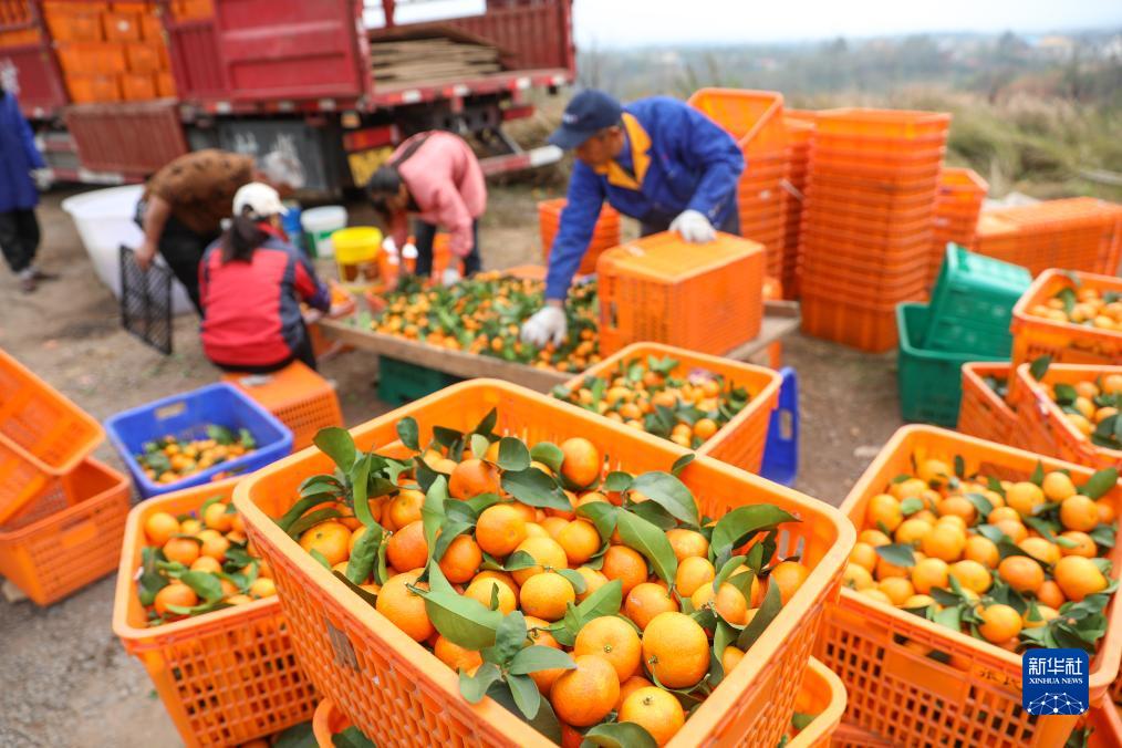 11月30日,在湖南省衡陽縣臺源鎮花江村越生柑桔基地,村民在篩選砂糖桔。