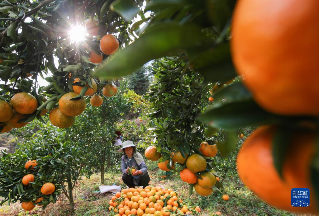 11月29日,村民在貴州省黔東南苗族侗族自治州從江縣剛邊壯族鄉平中村采摘椪柑。