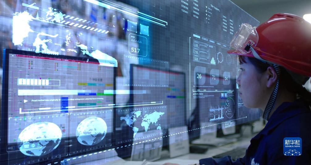 在中國(廣西)自由貿易試驗區欽州港片區,一家新能源電池材料企業員工在監控自動化車間作業(11月29日攝)。