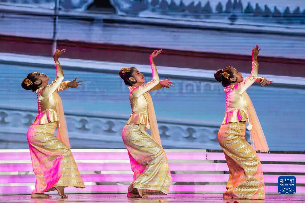 11月30日,來自緬甸的藝術工作者在表演舞蹈《吉祥如意》。