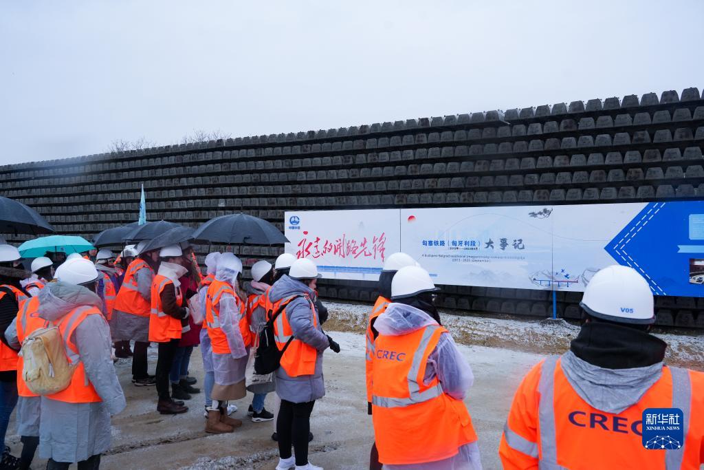 11月30日,匈牙利羅蘭大學中文系師生在匈牙利陶克肖尼參觀匈塞鐵路施工現場。