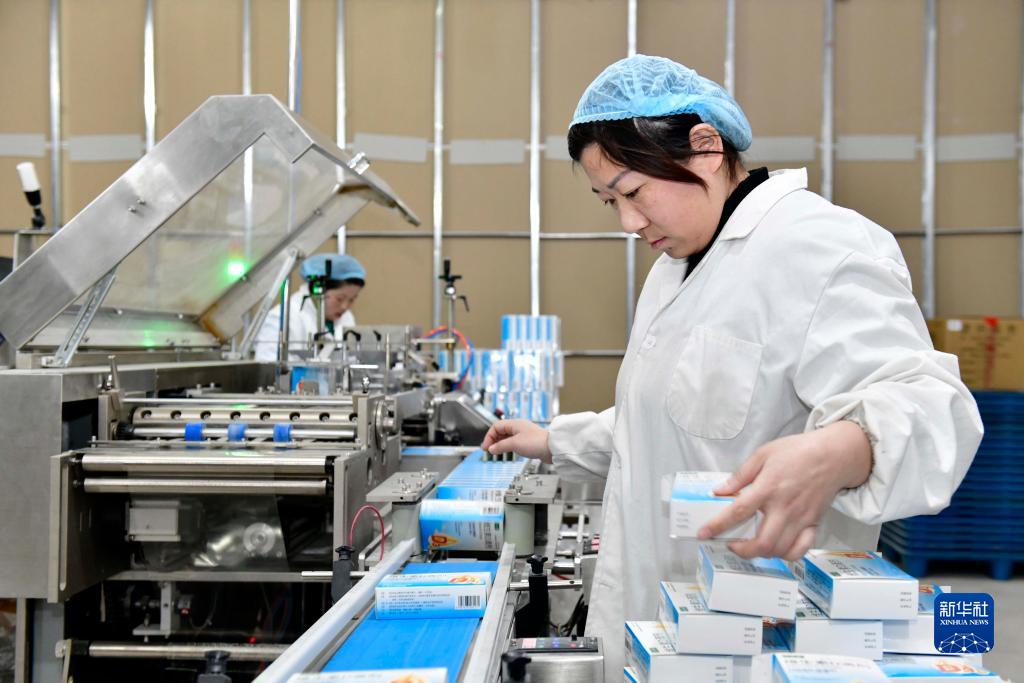 11月30日,在華夏國藥(菏澤)制藥有限公司,工作人員在成品藥分包線上作業。