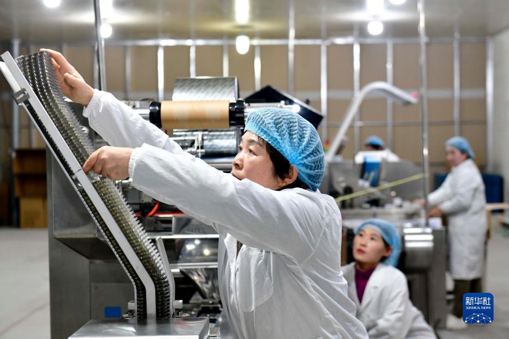 11月30日,在華夏國藥(菏澤)制藥有限公司,工作人員在成品藥分包線上作業。