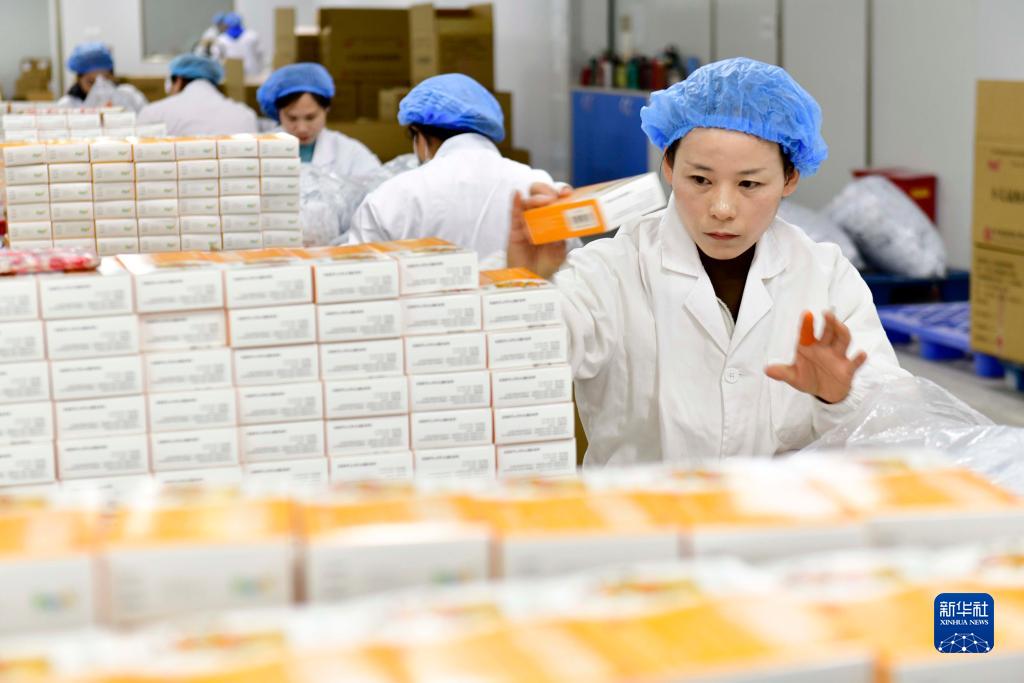 11月30日,在華夏國藥(菏澤)制藥有限公司,工作人員將成品藥裝盒。