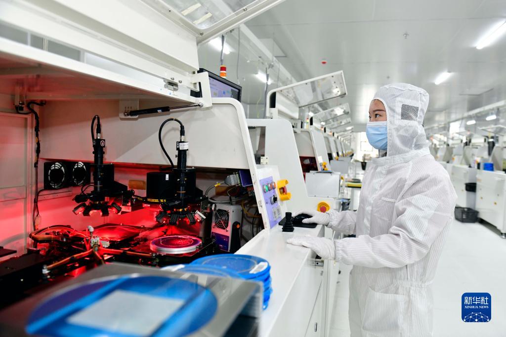 11月30日,在巨野縣新一代信息技術產業園,工作人員在直顯芯片生產設備前值守。