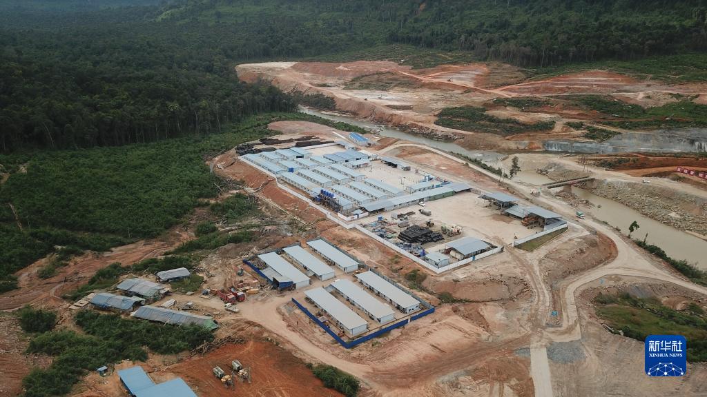 這是11月29日在柬埔寨戈公省特莫邦縣拍攝的上達岱水電站施工營地(無人機照片)。